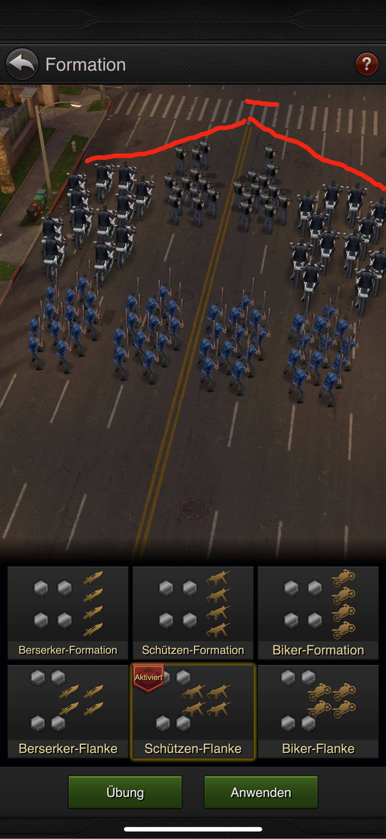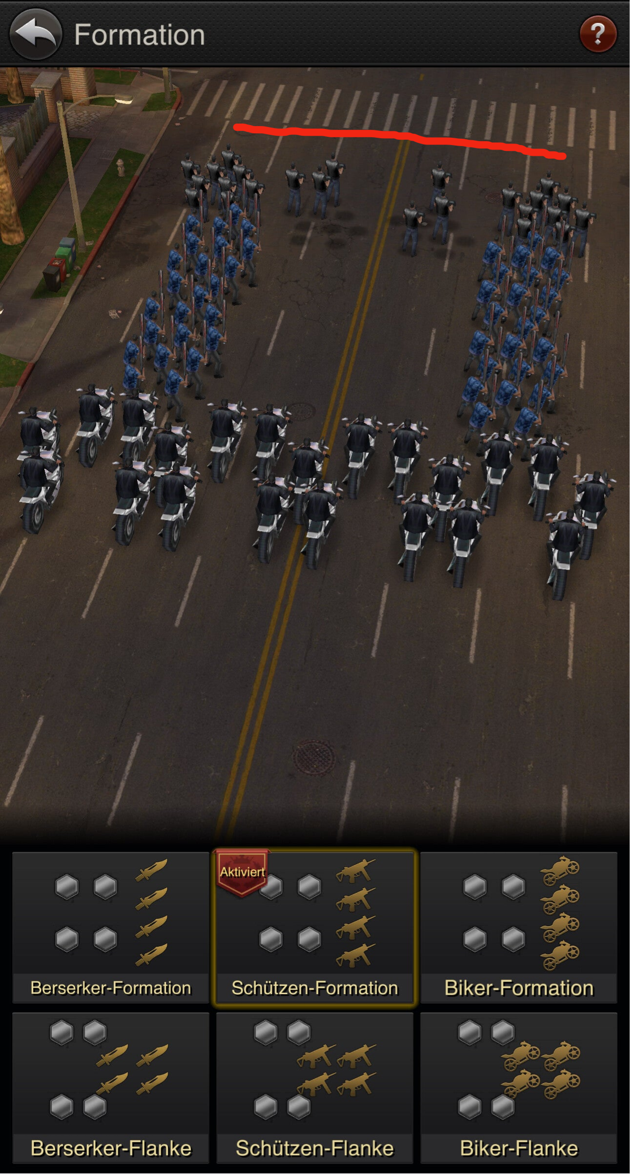 BEISPIEL: Wenn dein Gegner mit Bikers angreift, solltest du Hitmen an der Front positionieren - Schützen Formation oder Flanke .